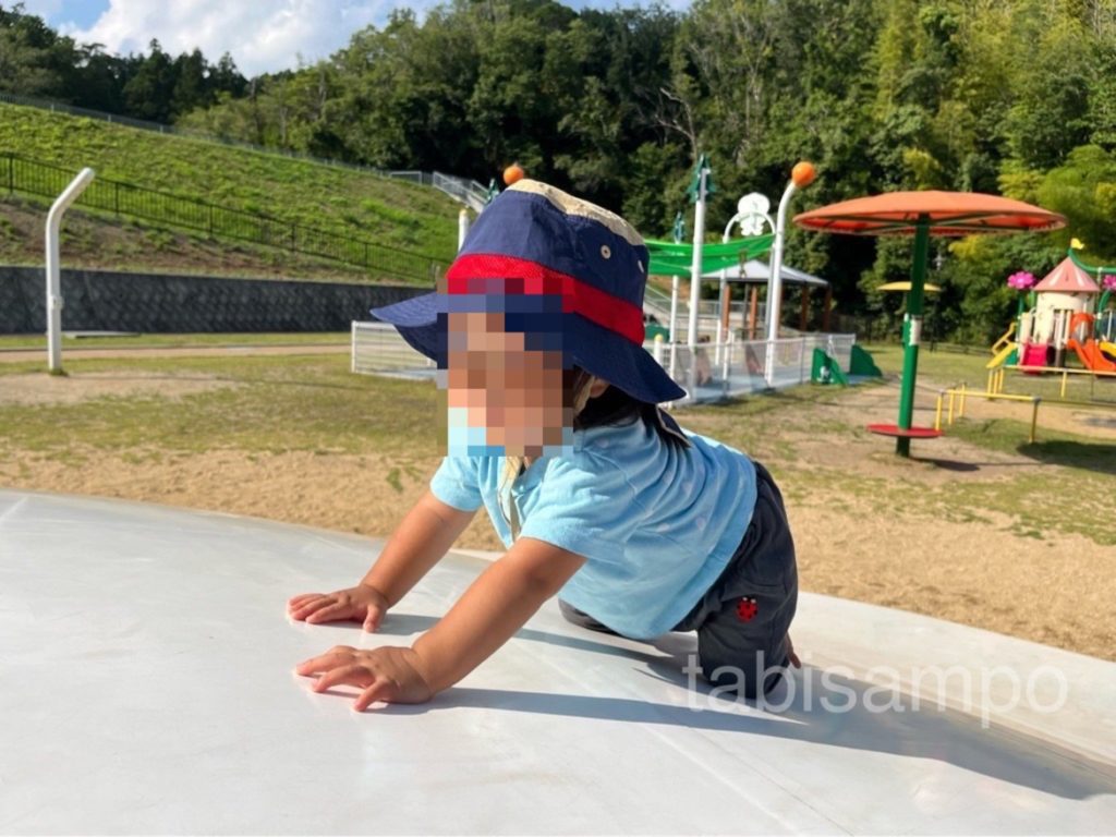 1歳の娘が歩けるようになって3週間。靴を履いて外に出たがる娘を連れて、和歌山県橋本市の杉村やすらぎ広場に行ってきました。前から気になっていた公園ですが、今は8月で連日の猛暑日続きでなかなか行けず…